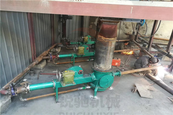 但落料管斜角大于等于45°。如果裝在電除塵落灰下部,可以一斗一管,也可兩斗兩斜管,特殊情況也可四斗四斜管插入一臺氣力輸送料封泵中,但所有落灰斜管的斜度均應(yīng)大于等于45°。一般情況下,為了保證輸送速度及其氣力輸送料封泵損耗度,一管一泵即可。