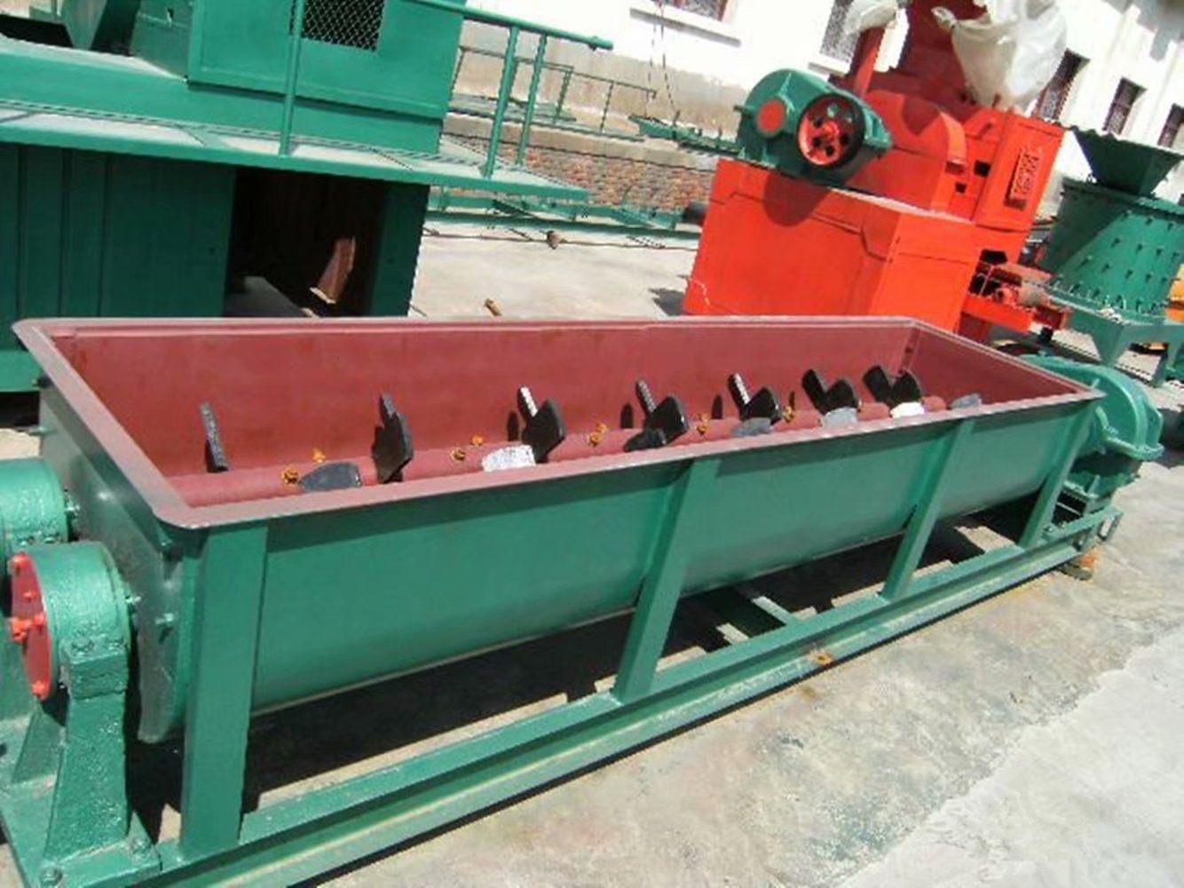 雙軸加濕攪拌機對泥料的攪拌、混合、輸送主要是通過攪拌葉來實現的,攪拌葉對攪拌效果起著很大的作用。當攪拌葉嚴重磨損而變薄、變短甚至葉片折斷時,攪拌的功能會大大削弱,這時就要修理或更換攪拌葉。攪拌葉角度過小、過大或不一致時,就要及時修理或更換攪拌葉。攪拌葉角度過小、過大或不一致時,就要調整攪拌葉的角度。如果出現攪拌軸速度太低的情況,應改變速度。另外,設備不配套也會導致這種問題的產生,可考慮給前道工序加裝對輥機。
